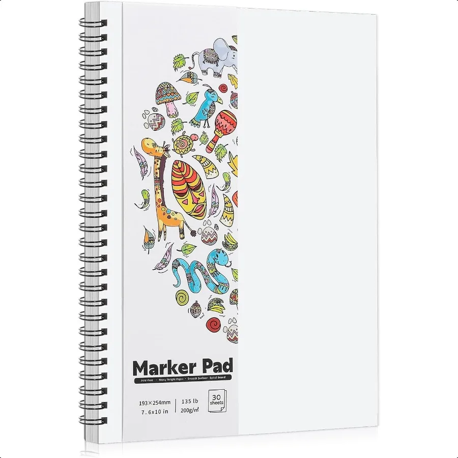 135lb 200gsm Marker Paper Pad 7.6×10in Double Sided Bleedproof Marker Sketchbook 30 Sheets Art Paper Sketch Pad Painting Colori