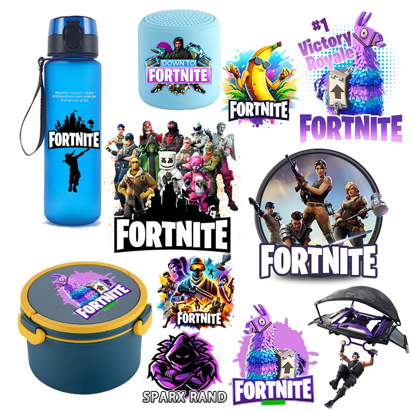 Game Fortnited UV Crystal Label Sticker Fortress Night Cold Transfer Print Transparent Self-adhesive for Lunchbox Bottle Cup DIY
