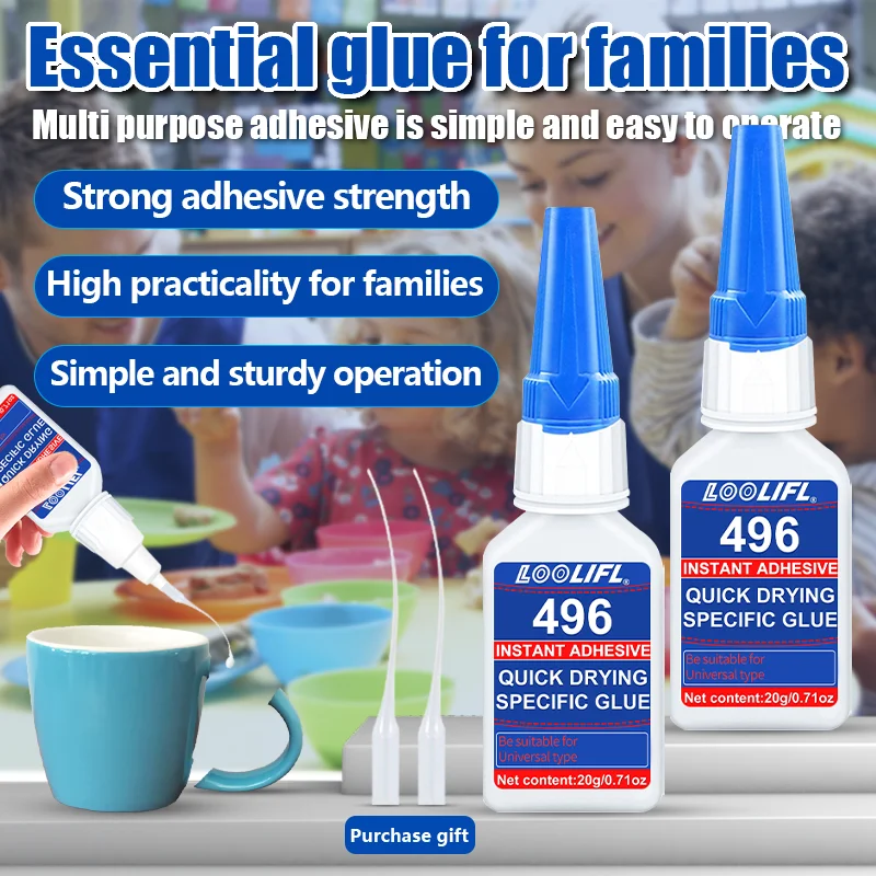 LOOLIFL 496 high strength instant glue, super glue, cyanoacrylate glue, suitable for glass, metal, plastic, wood, rubber, not easy to whiten, long lasting, send glue tube, factory direct, 20ml,