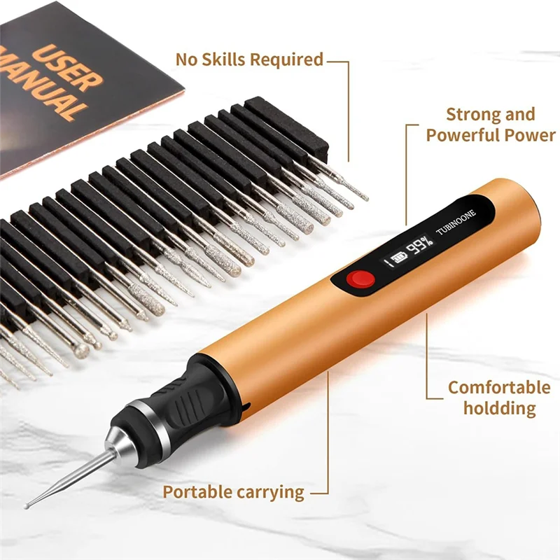 ABXF-Engraving Pen For Artists & Diyers: 50+ Surfaces Engraver, Beginner Friendly, Rechargeable With 30 Bits & Mastery Guide