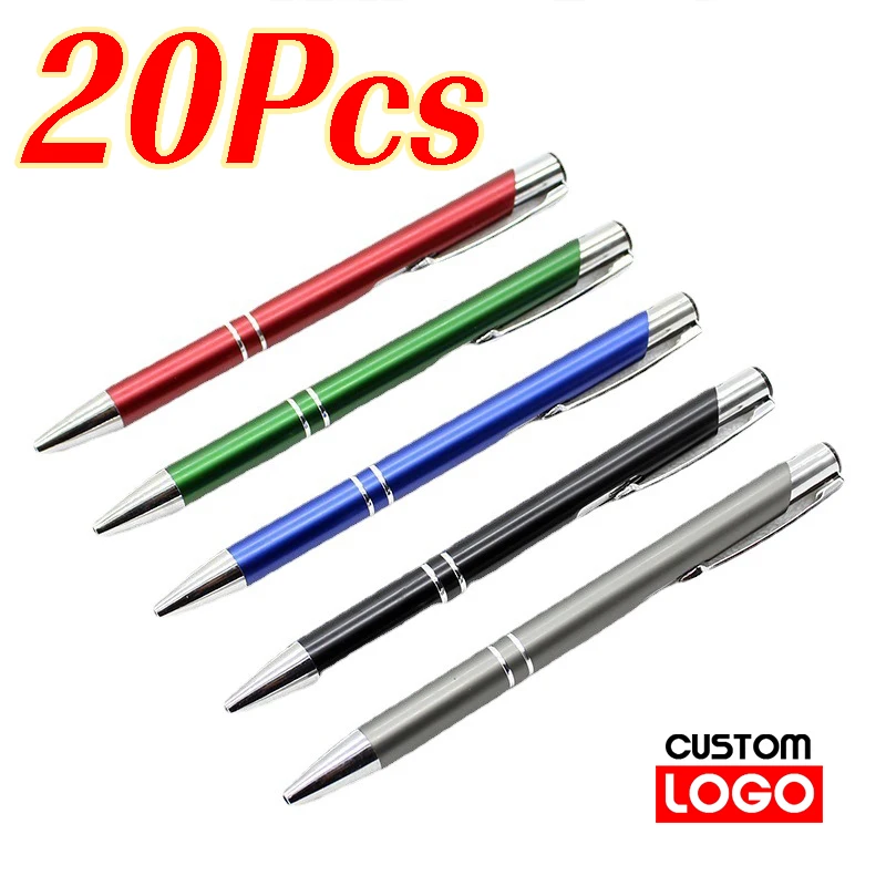 20pcs Custom Logo Pen Laser Engraving Name Metal Ballpoint Pen Personalized Advertising Pen School Teacher Gift Office Supplies