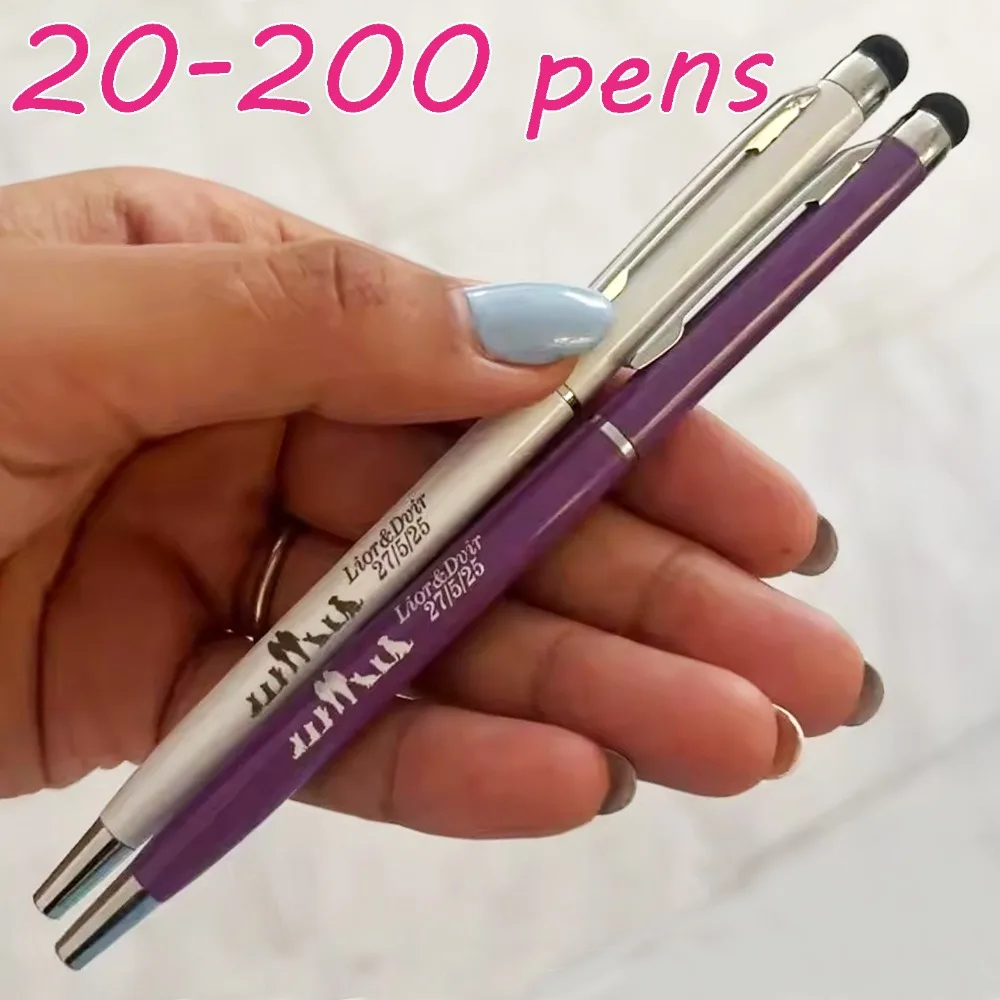 20-200 pens Mini Metal 2-in-1 Stylus Universal Ballpoint Pen Text Engraving Custom Logo Office School Advertising Pen