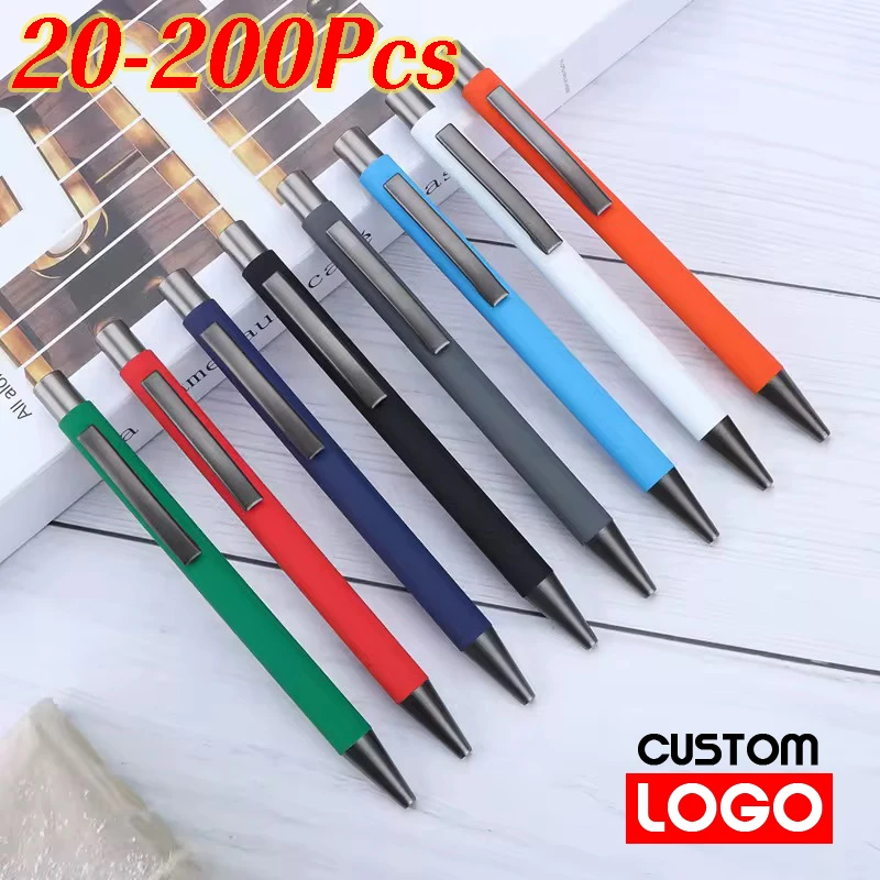 20-200 Pens Wholesale Metal Ballpoint Pen Advertising Pen Rubber Texture Custom Logo Text Laser Engraving Customizable Name Logo  Read more