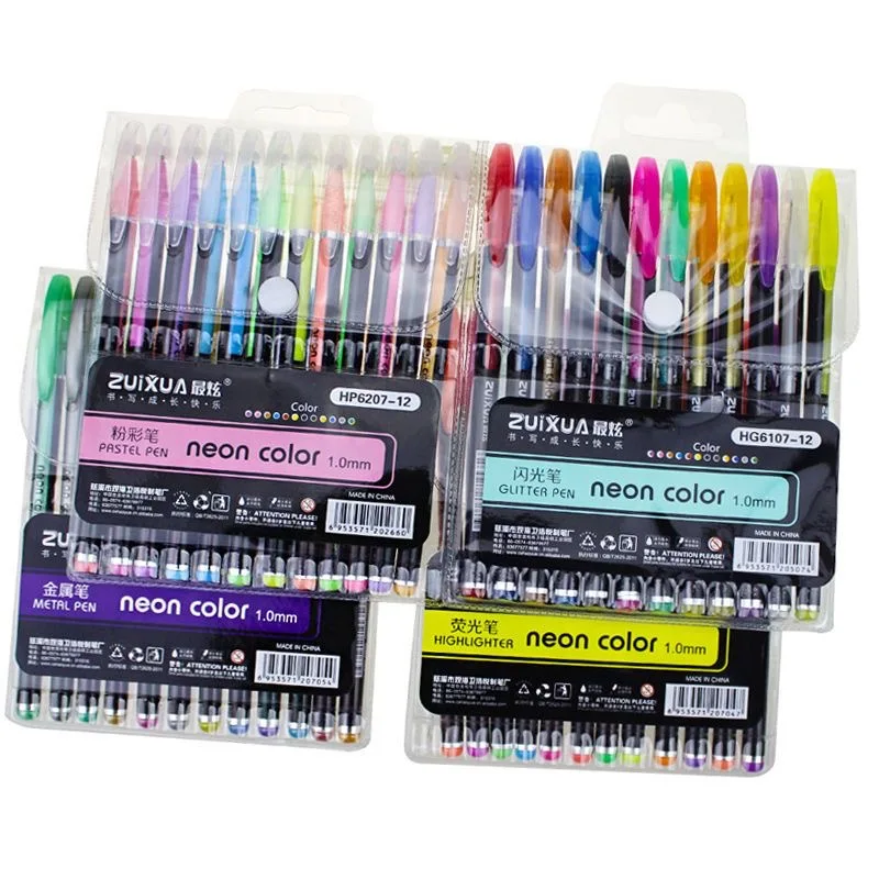 GENKKY Promotion pen 12 Colors Gel Pens Set Glitter Gel Pen For Adult Coloring Books Journals Drawing Doodling Art Markers