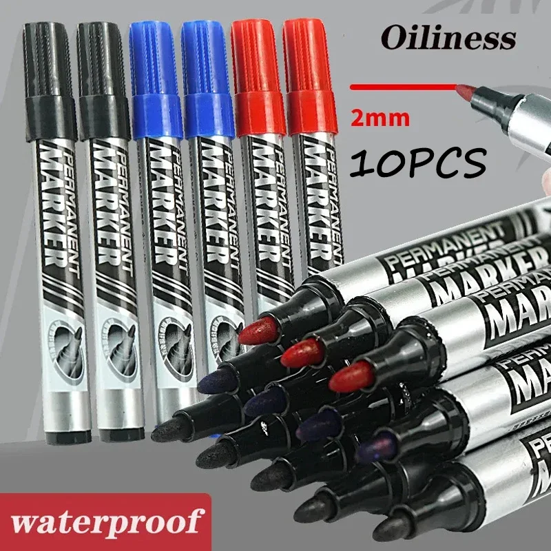 2/5pcs Permanent Oily Marker Black Ink 2.0mm Waterproof Quick Drying For Metal, Plastic, Tiles, Glass, School and Office Supplie