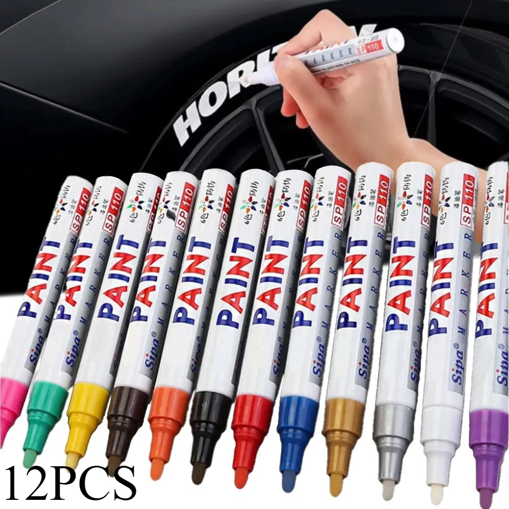 12PCS White Oil Paint Markers for Graffiti Tyre Writing Art DIY Crafts Office School Supplies Fine Tip Permanent Markers