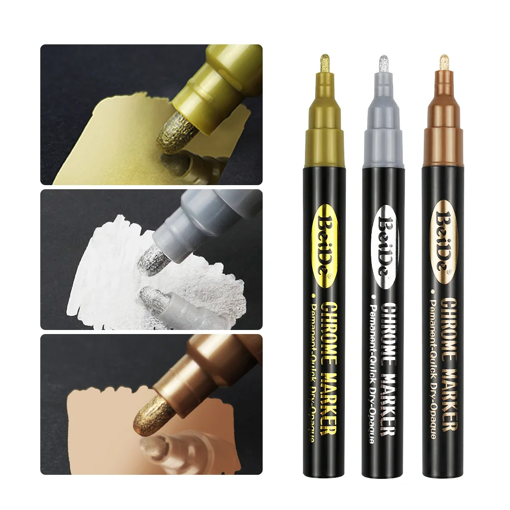Chrome Mirror Marker Pen Gold Sliver Copper Permanent Marker Pen 1mm/3mm/6mm Paint Pen for Model Metal DIY Art Painting