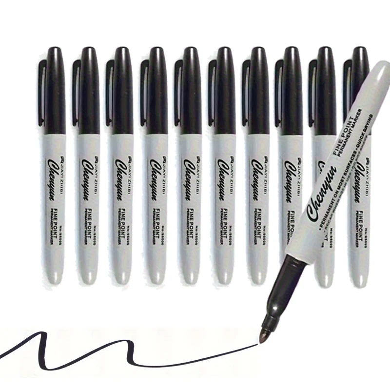 10pcs Black Permanent Marker Pens – Quick Dry, Non-Fading, Ideal for Logistics & Shipping