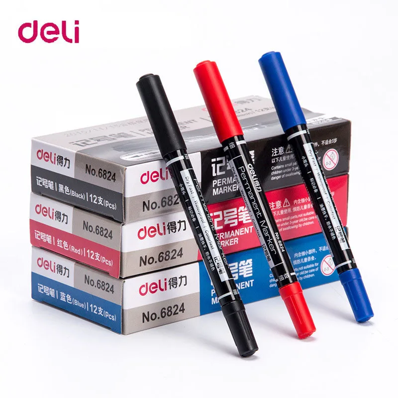 (1-3pc) Deli Wholesale Dual Tip 0.5/1mm Quick Dry Permanent Sign Marker for Metal Fabric Quality Thin Line Pen for Drawing