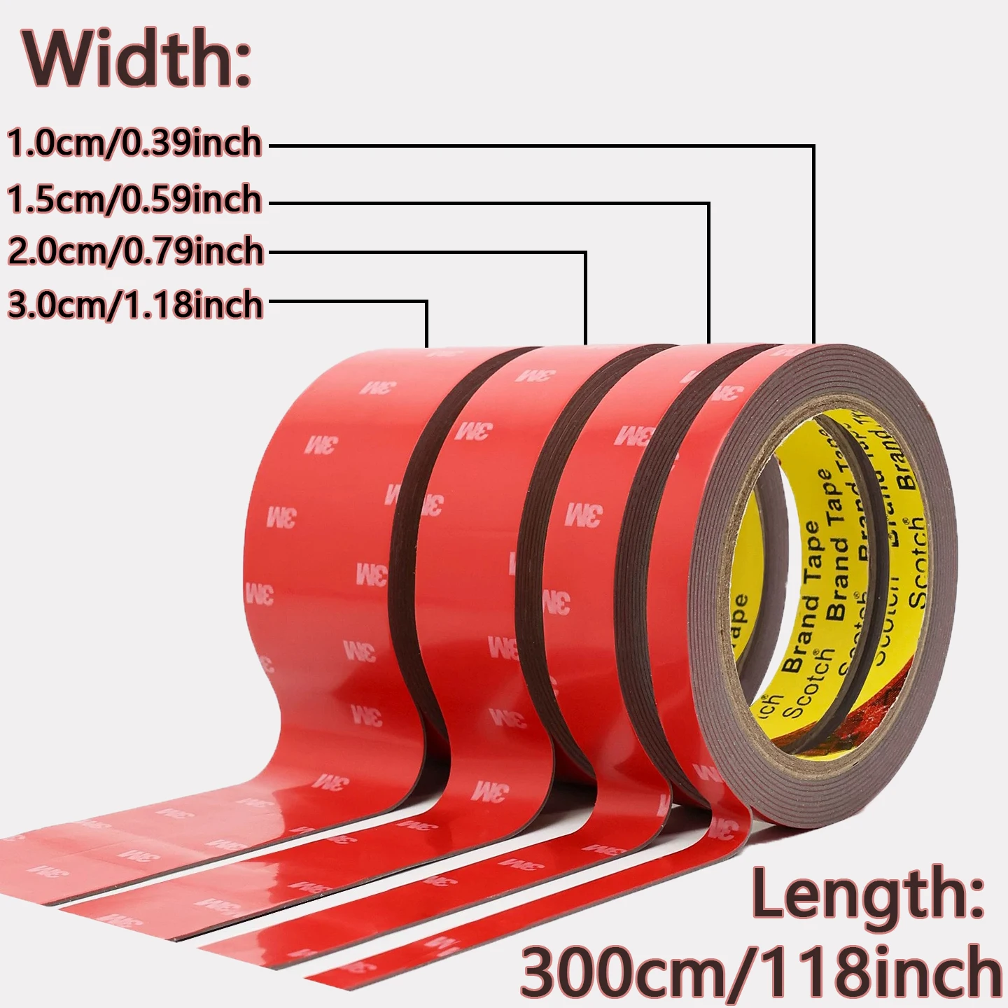 Double Sided Tape, Heavy Duty Mounting Tape Waterproof Foam Tape, 3m Length, 0.59/0.79/1.18inch Width for LED Strip Lights, Home