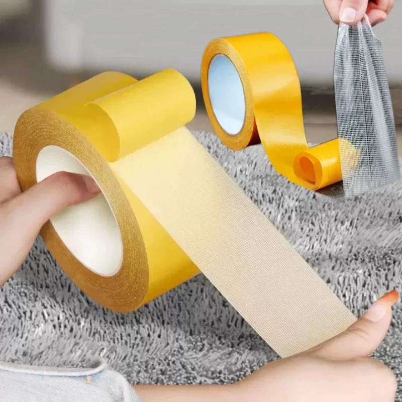 Super Traceless Carpet Adhesive Double Sided Cloth Base Tape with Strong Fixation High Viscosity for Waterproof Translucent Mesh