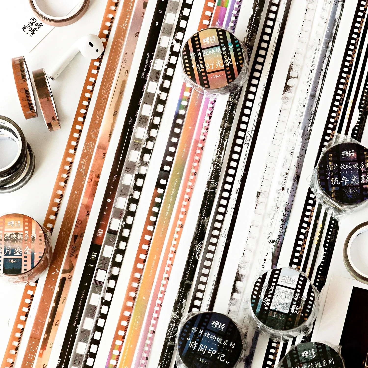 Journamm 3pcs/pack 7mm*2m Vintage Film PET Tapes DIY Scrapbooking Masking Tape Collage Junk Journal Creative Stationery Tapes  Read more