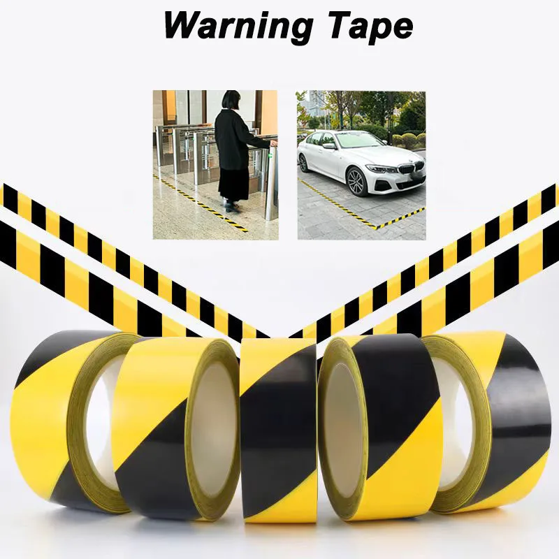 Caution Tape Yellow Black Warning Tape Marking Safety Floor Tape For Factory Warehouse Stairs Pipes Equipment Warning Stickers