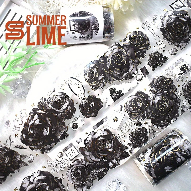 2m Golden foil PET Washi Tape Dark Rose Transparent Roll Stickers Decorative Adhesive Tape For Scrapbooking Journal Stationery