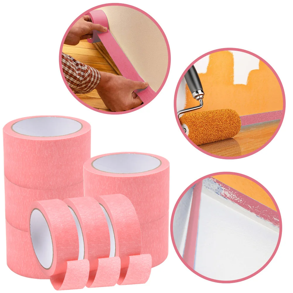 3 Rolls/Set Pink Painters Tape Painters Masking Residue-Free and Artisan Grade Wall Trim Tape Multi size universal version DIY