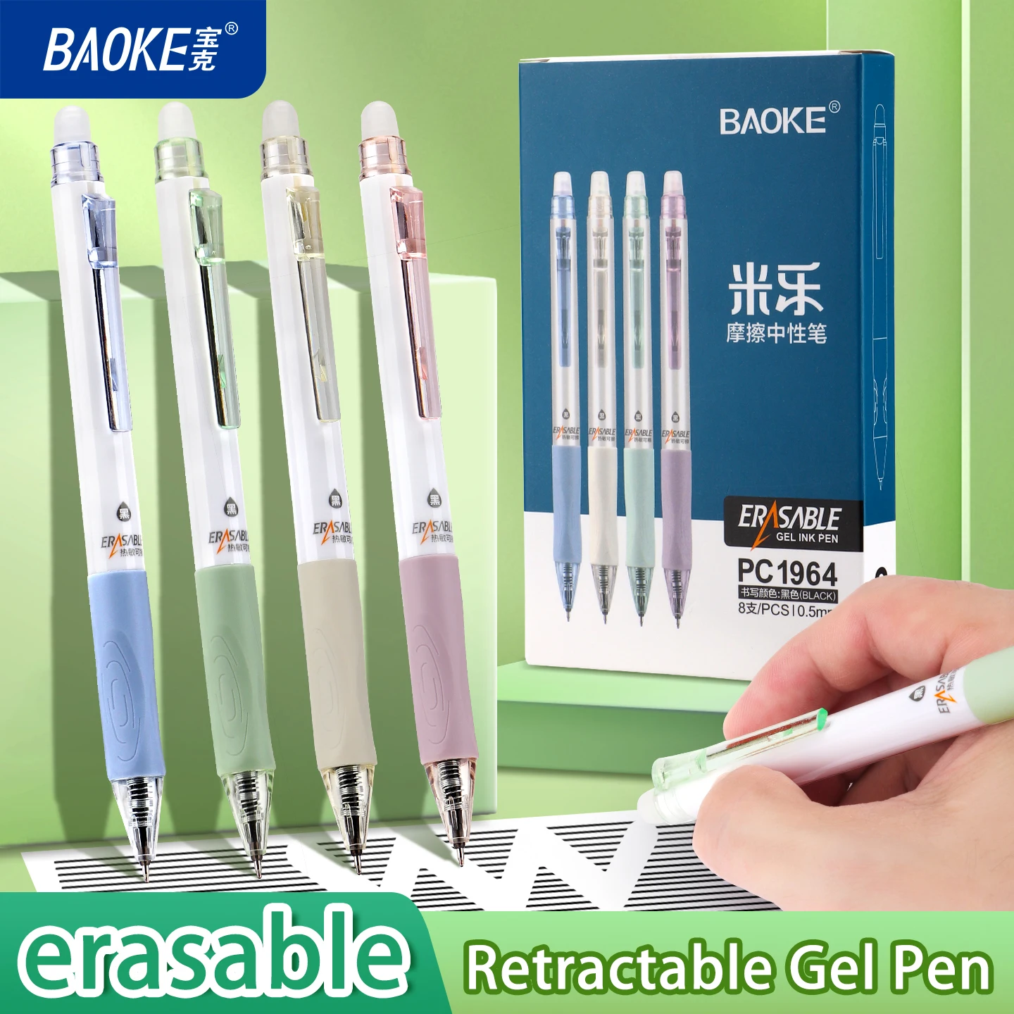 BAOKE PC1964 0.5mm Erasable Gel Pen ST Tip Refillable Black Blue Ink 4 Barrel Colors Retractable Pen