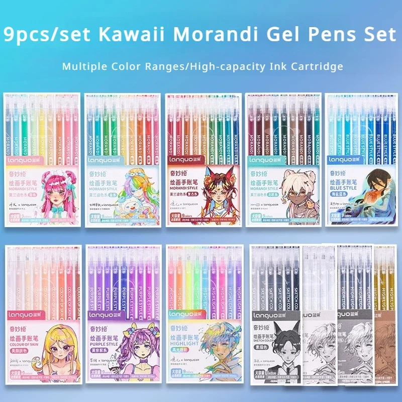 198/6 pcs Kawaii Morandi Gel Pens Set Art Markers Multi Color Gel Ink Pens Liner Ballpoint Pen School Office Stationery Gift Pen