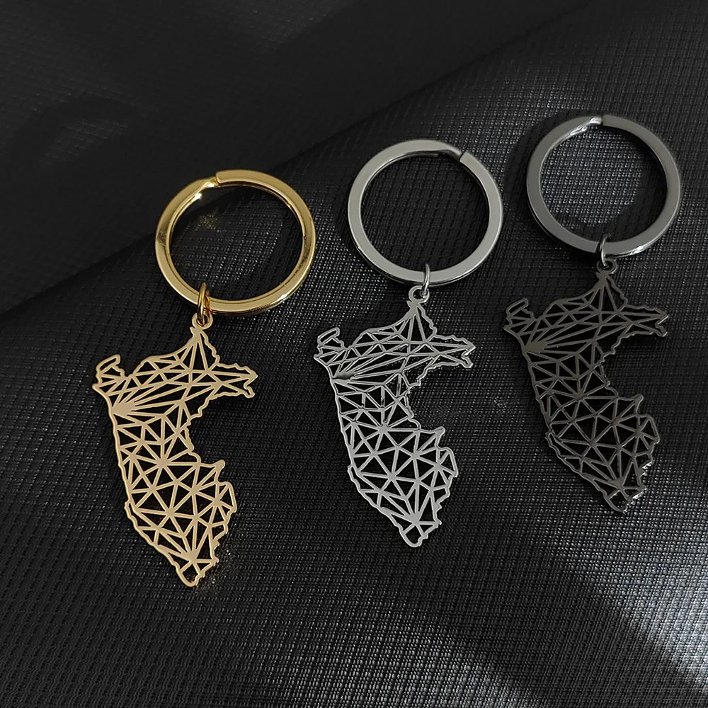 Stainless Steel Peru Map Keychain Maps Pendant Key Chains Ring for Women Men Car Accessories Jewelry Party Gifts Wholesale