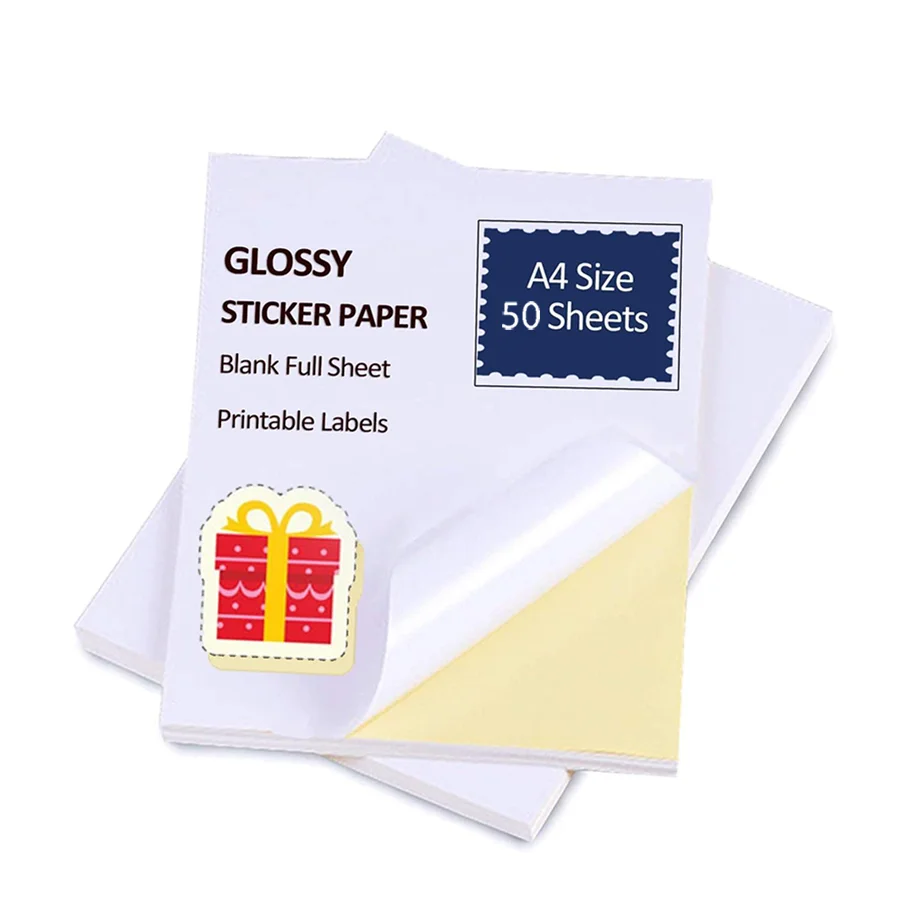 50sheets glossy stickers & A4 self-adhesive paper, printed stickers - self-adhesive stickers, bright white, quick drying