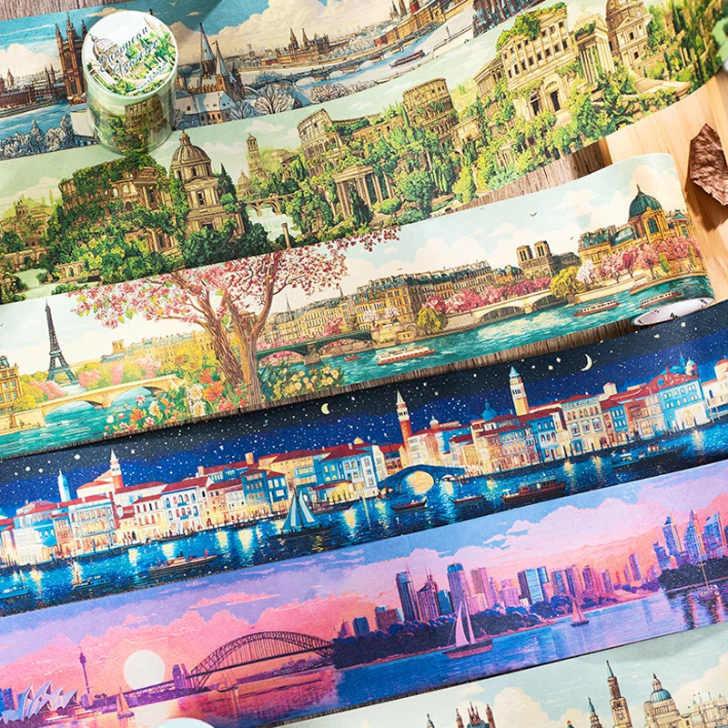 Mr Paper European Traveler Series 3 Rolls Washi Tape Set, Scenic Journal Decoration for Scrapbooking Phone Case Albums Dairy DIY