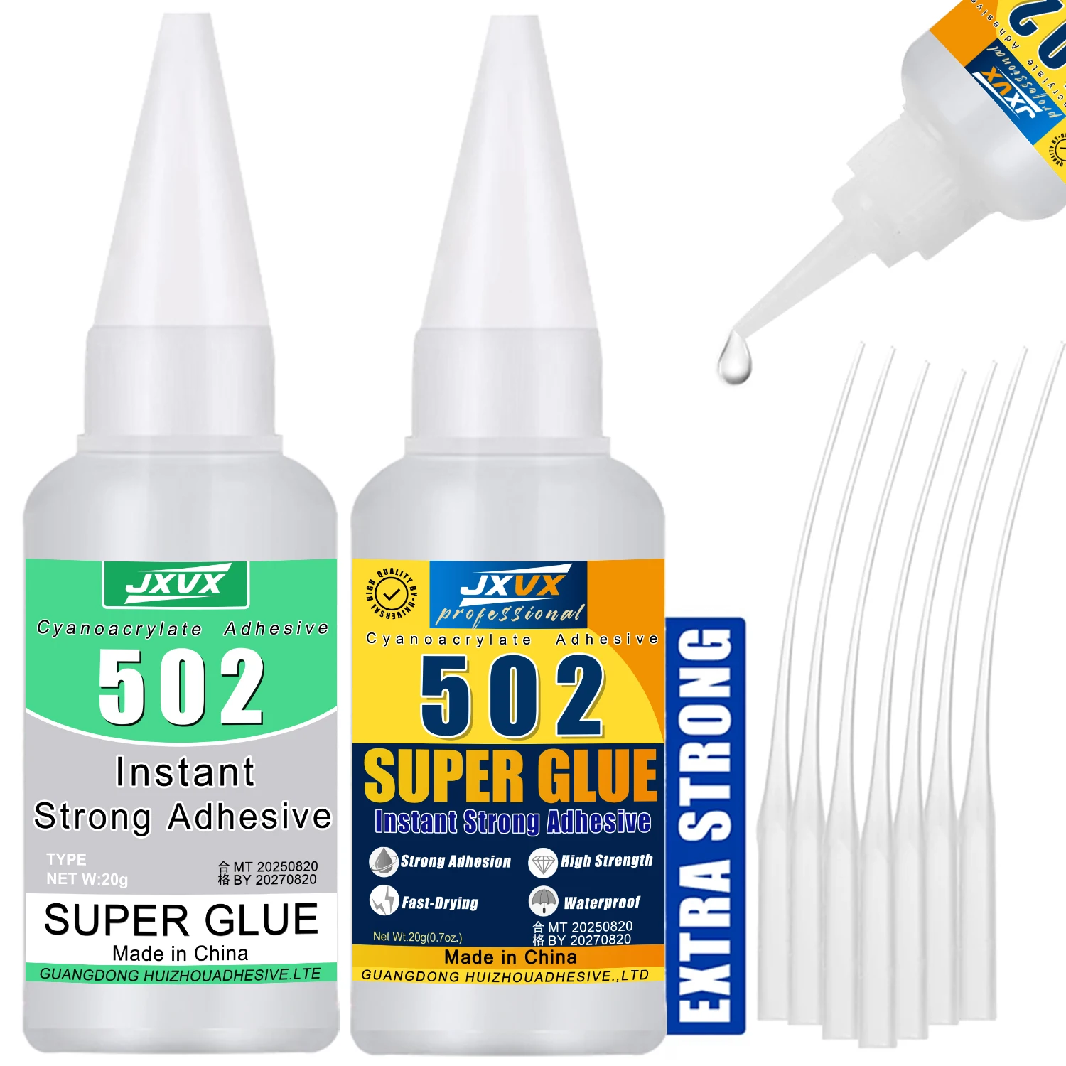 JXVX high-quality 502 transparent multi-purpose super adhesive multi-material quick adhesive is suitable for environmental protection bonding of glass ceramics, wood and metal rubber. Liquid adhesive