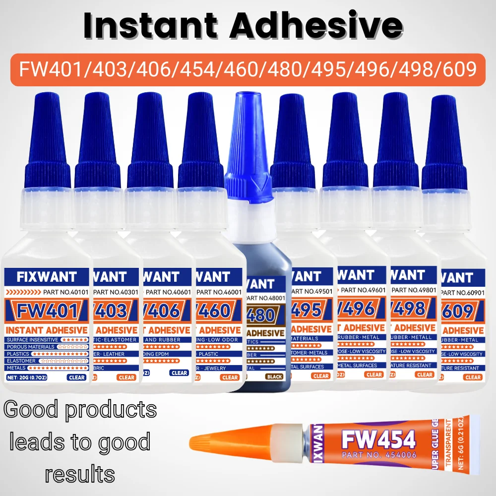 Instant Adhesive FW401/ 403/ 406/ 454/ 460/ 480/ 495/ 496/ 498/ 609 Super Glue Extra Strong Multi-purpose Cyanoacrylate