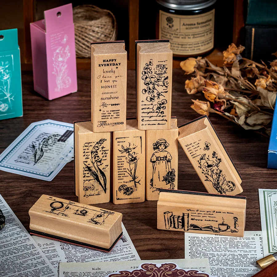 Student Exquisite Wooden Flowers Plants Girls Seals Creative Fresh Plant Handbook DIY Diary Decorative Seals 8 Styles Wood Stamp  Read more