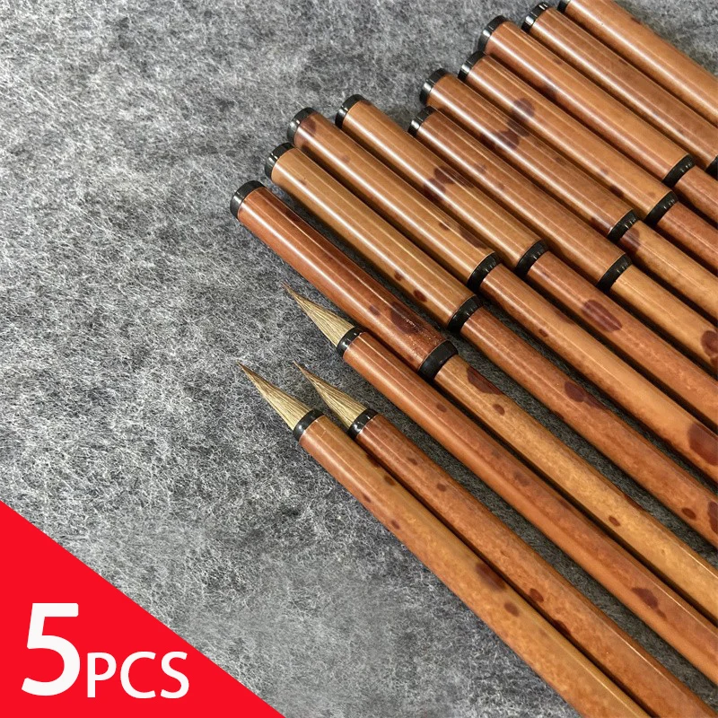 5 Pcs Portable Calligraphy Brush Small Characters Xiaokai Regular Script Writing Brush Bamboo Weasel Hair Chinese Painting Brush