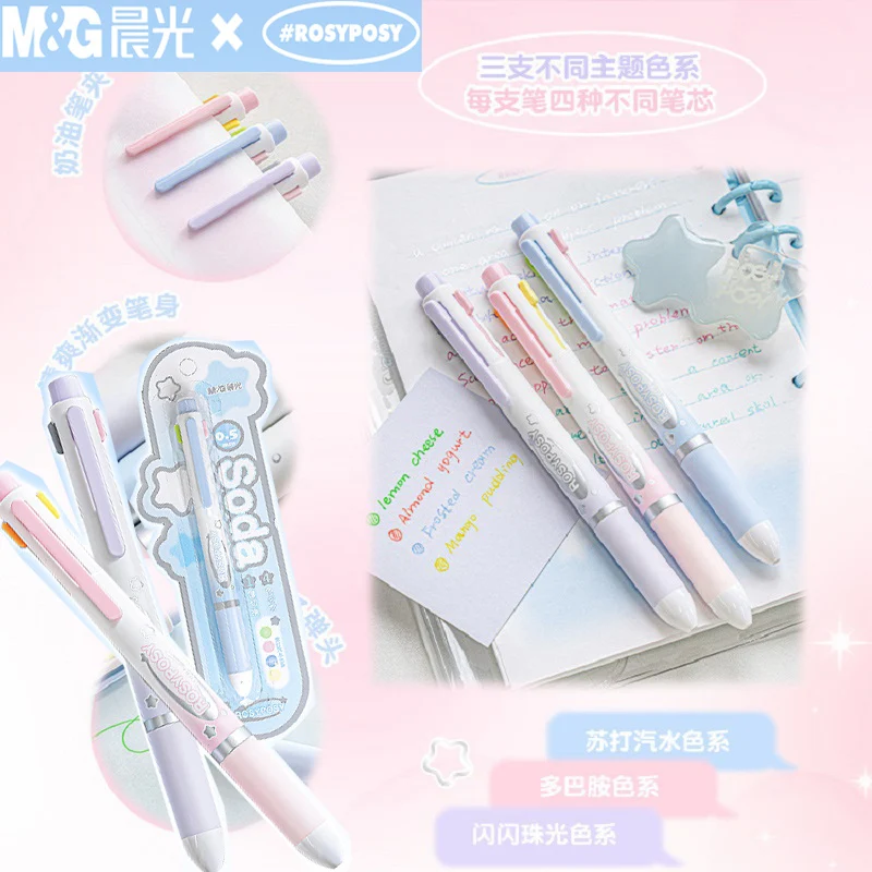 M&G RosyPosy LuciditySeries 4-Color Modular Pen, Retractable Multi-Pen Smooth Ink Delivery for Efficient Organization&Note-Taking