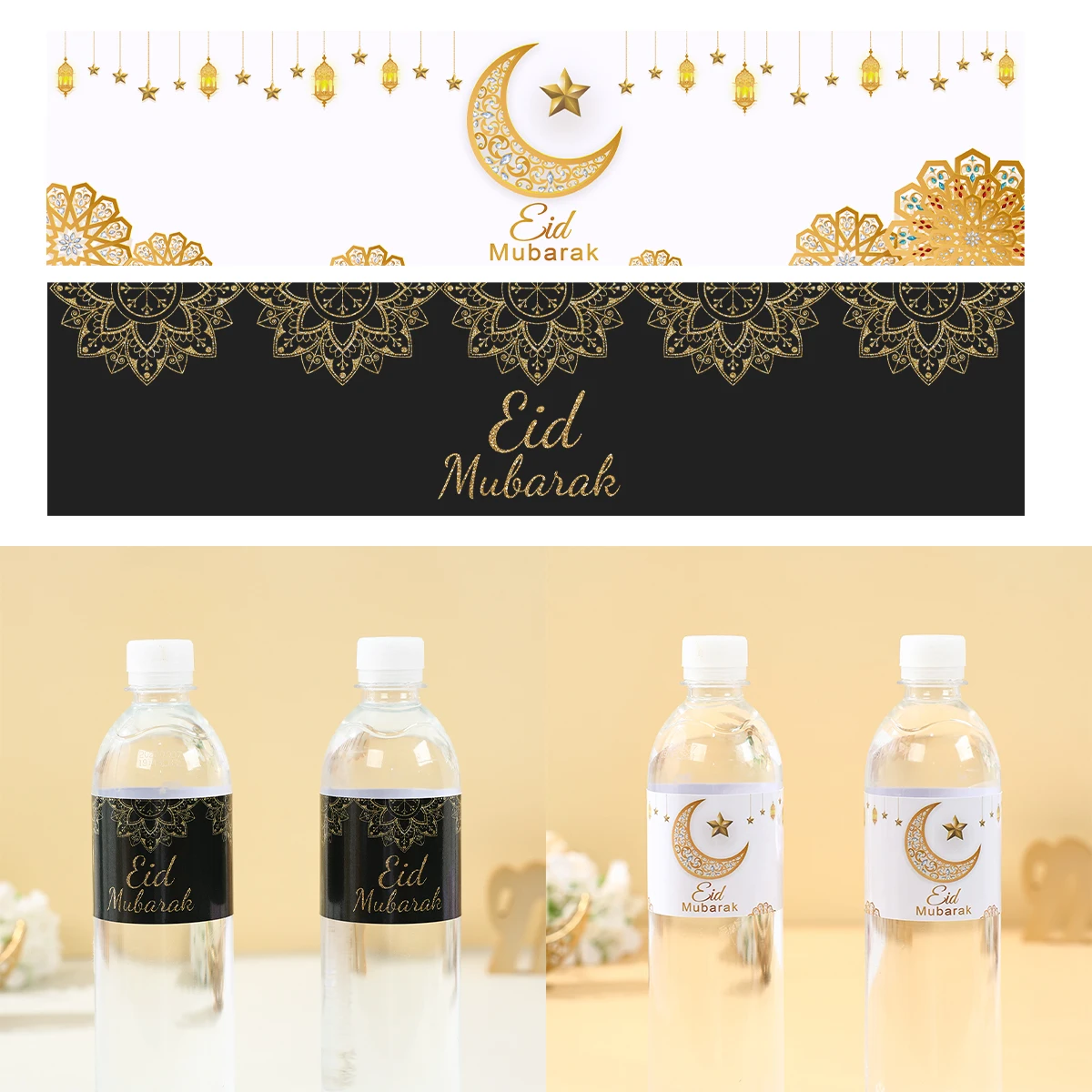 10/24pcs Eid Mubarak Labels Bottle Wrapper Sticker Ramadan Kareem Festival Party Supplies Water Bottle Cover Eid Al-fitr Decor