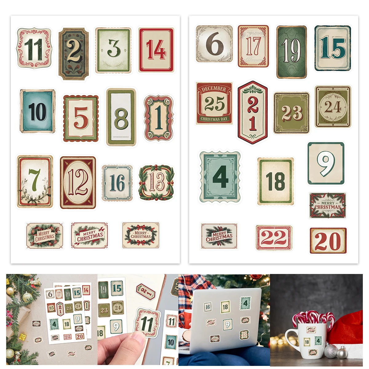 30pcs Christmas Advent Calendar Stickers, 1-25 Number Merry Christmas Countdown Labels, Gift Sealing Sticker, Christmas Decorations