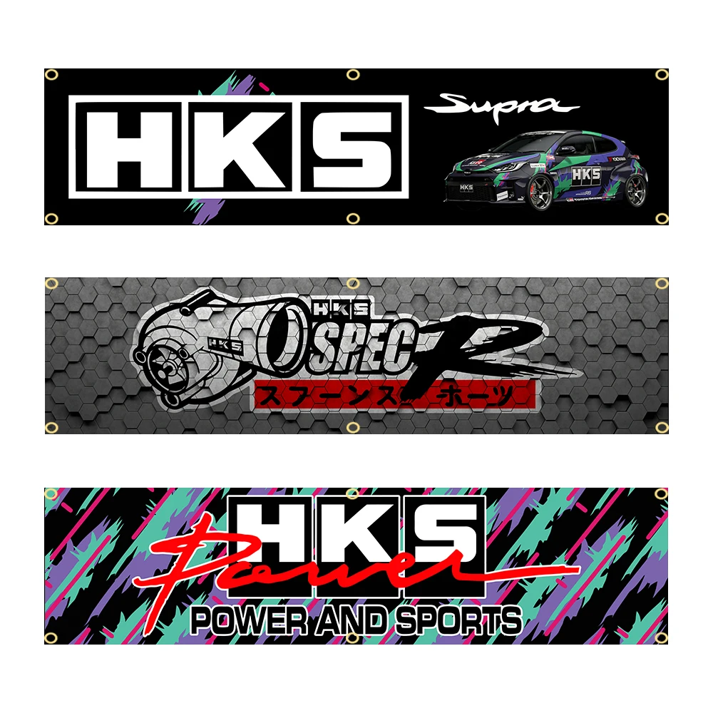 60X240cm HKS Power logo Banner Flag Polyester Printed Garage or Outdoor Decoration Tapestry