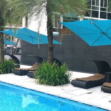 "The Spectra Solo Cantilevered Umbrella is a stand-alone canopy that offers up to 78 sq. ft. shade area. This model has a front leaning post to cover more area. Mounting options are available for concrete, decks and and in-ground footing, as well as...