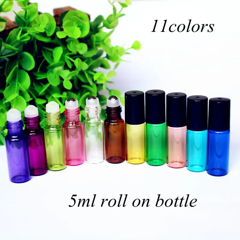 5pcs/pack 5ml Amber Perfume Glass Bottle with Glass/Metal Ball Roller Essential Oil Vials Refillable Perfume Roll on Bottle
