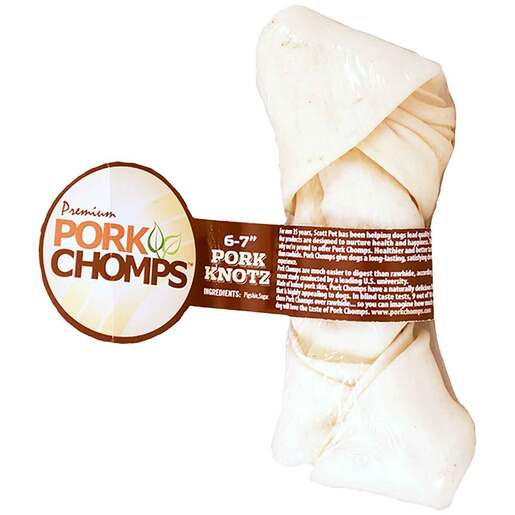 Pork Chomps 6-7in Pork Knotz Dog Treat - 6-7in Knot made from baked pork skin that dogs find naturally irresistible! No artificial flavors or preservatives.
