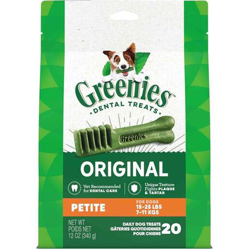 Greenies Original Petitle Treat Pak Dog Treats - One Greenies Original Dental Treat a day is all it takes for clean teeth, fresh breath, and a happy dog. Your dog can't wait to sink their teeth into these delicious, original-flavor dental dog chews...