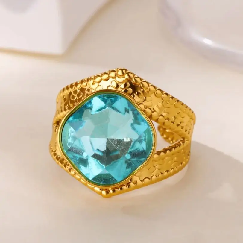 Zirconia Blue Oval Rings for Women Girls Gold Color Stainless Steel Ring Vintage Luxury Couple Wedding Band Jewelry Gift BFF  Read more