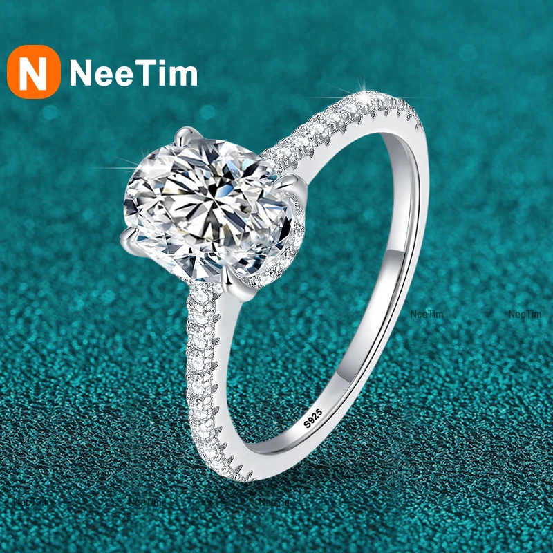 NeeTim 1ct 2ct 3ct Oval Cut Moissanite Rings for Women 925 Sterling Silver Lab Diamond Wedding Engagement Ring Gemstone Band
