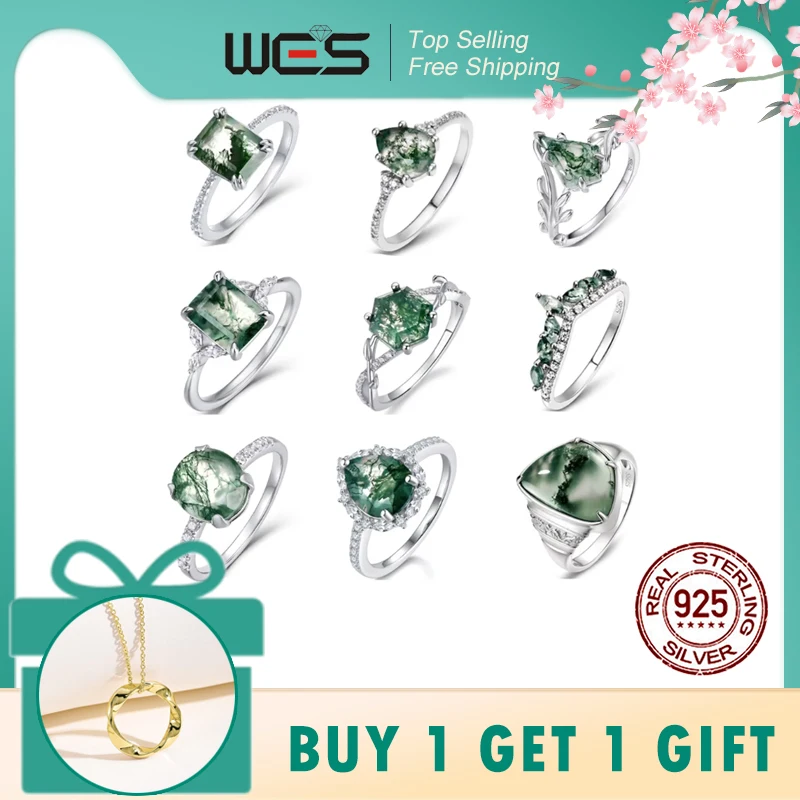 WES 925 Sterling Silver Natural Moss Agate Ring For Women Oval Cut Sea Grass Agate Flower Rings Wedding Party Jewelry Gift  Read more