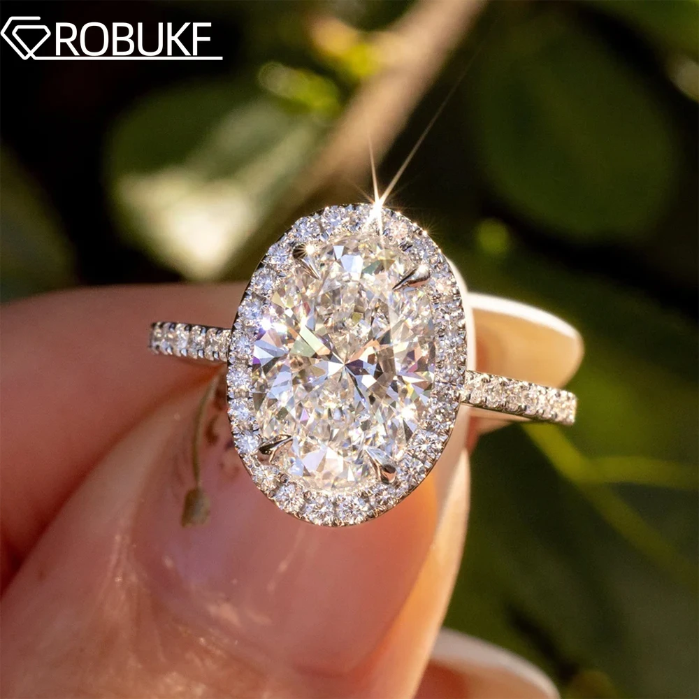 3CT 5CT Oval Halo Moissanite Engagement Ring For Women GRA Certified Sparkling D Color Diamond 925 Sterling Silver Wedding Band