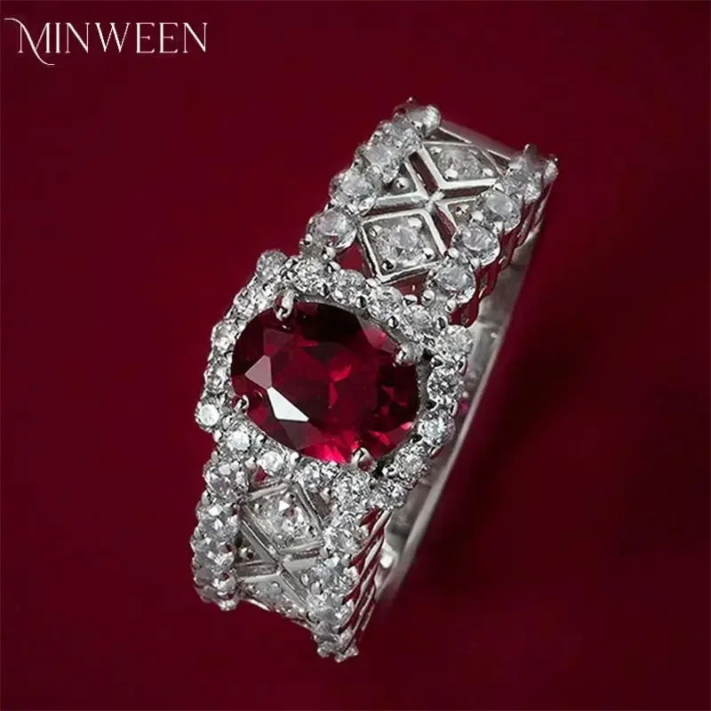 Luxury 925 Sterling Silver 1.5CT Oval Cut Ruby High Carbon Diamond 6*8MM Gemstone Wedding Party Fine Jewelry Ring For Women  Read more