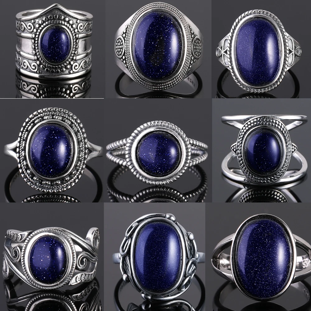 S925 Silver Ring for Women Oval Round Dropwater Natural Blue Sandstone Ring Gift Sun Shaped Retro Luxury Fine Jewelry  Read more