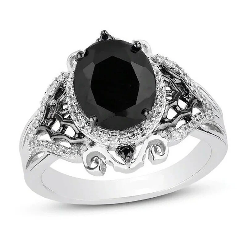 Luxury Female Big Oval Finger Ring Fashion Silver Color Engagement Rings For Women Vintage Black Stone Wedding Ring Jewelry