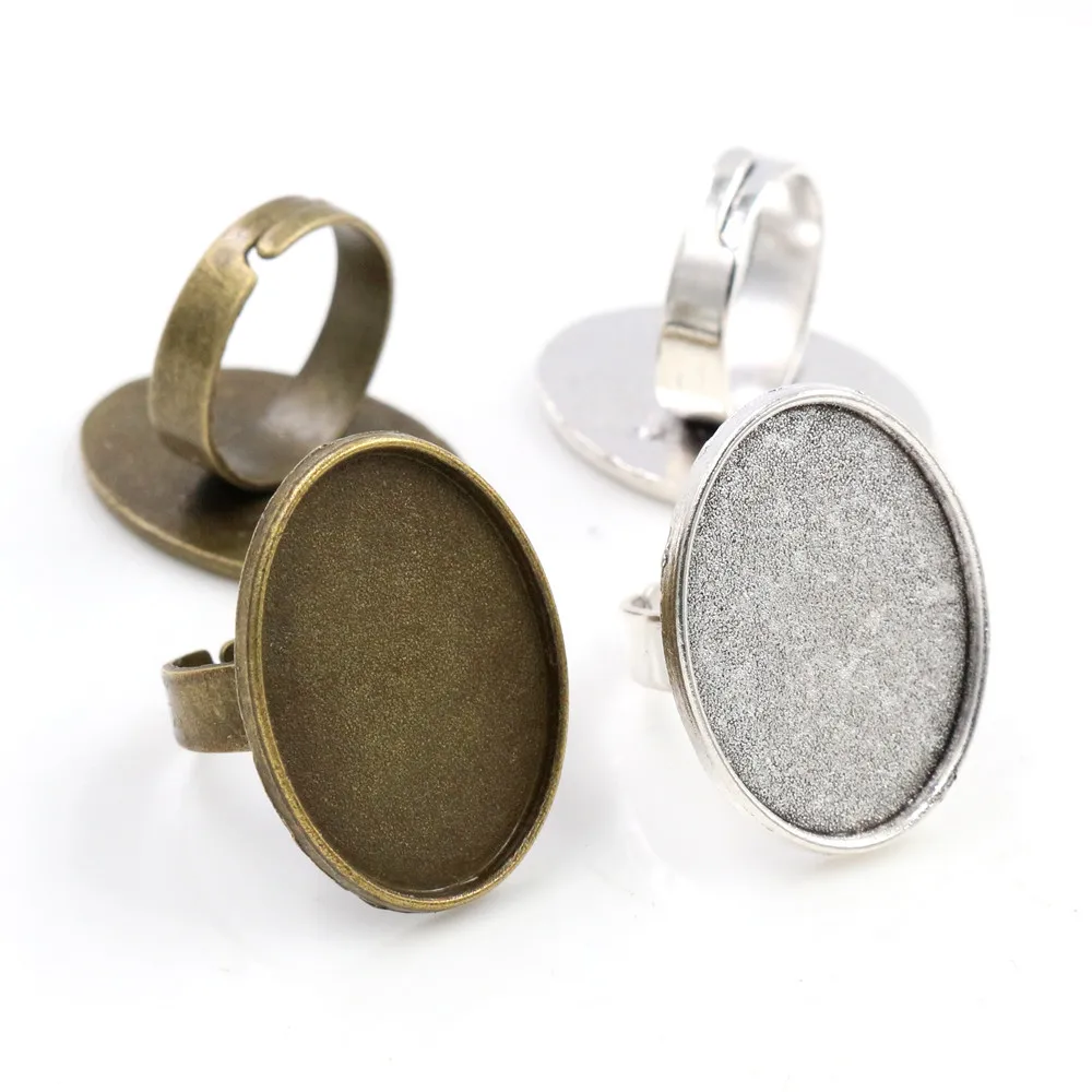 18x25mm 5pcs Antique Silver Plated/ Bronze/Black Brass Oval Adjustable Ring Settings Blank/Base, Fit 18x25mm Glass Cabochons