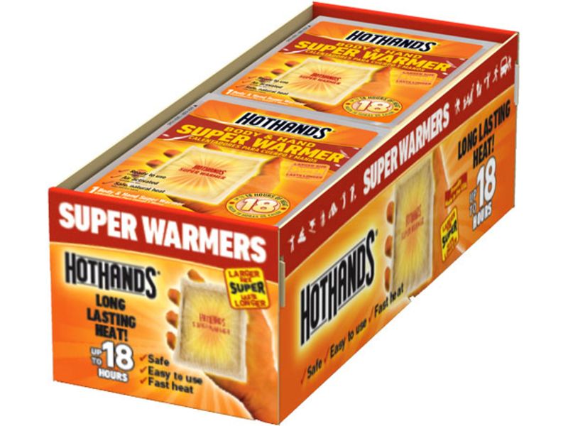 Hot Hands Body & Hand Super Warmer 18 Hours 40 Pack HH1ED240E. They provide up to 18 hours of continuous warmth for the hands and body. Features of Hot Hands Body & Hand Super Warmer 18 Hours: Larger and Longer Lasting Up to 18 Hours of Heat...  Read more