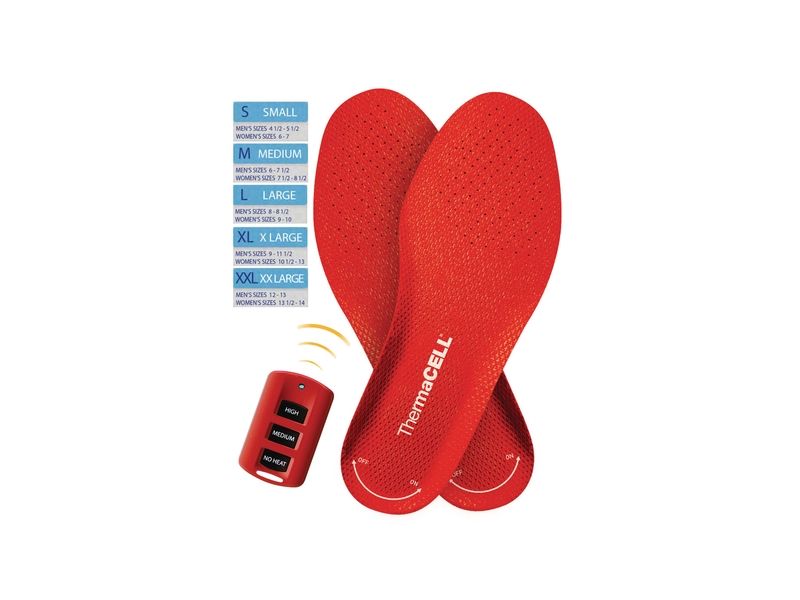 Thermacell Rechargeable Heated Insoles Size Extra-Large. This Thermacell Rechargeable & Wireless Heated Insole features high-tech wireless thermal technology with a remote control that is powered by rechargeable lithium ion batteries fits easily...  Read more