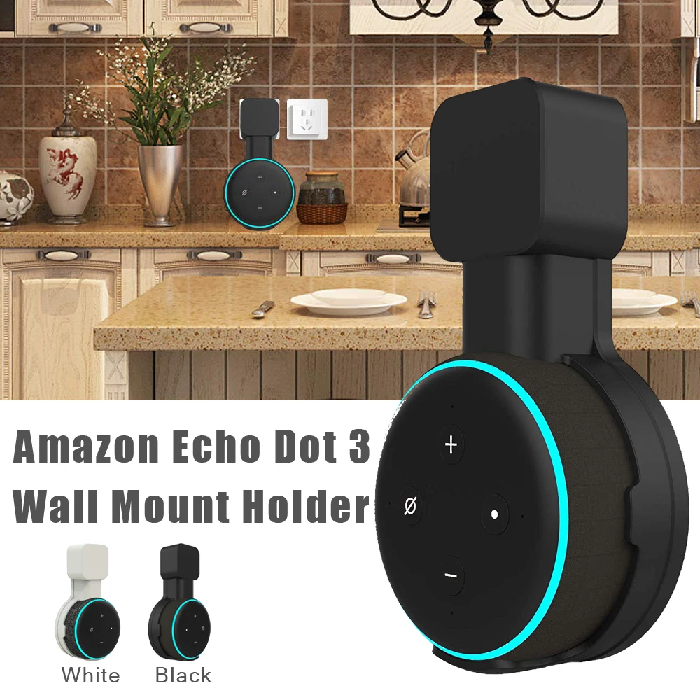 Echo Dot 3 Wall Mount Holder, Cord Management Bracket for Alexa Echo Dot 3rd Generation Speaker (EU US UK Plug)
