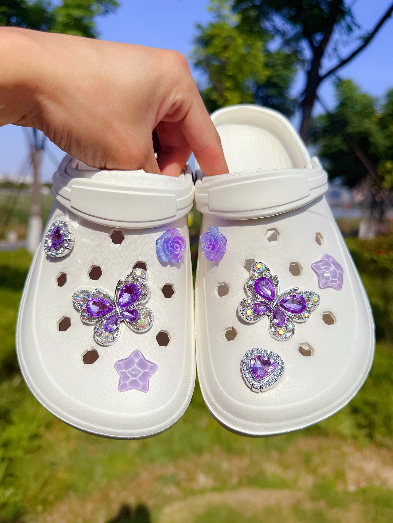 8 pieces of purple ABS diamond butterfly, love heart, water ripple star, gradient rose shoe buckle DIY decoration, women's sanda