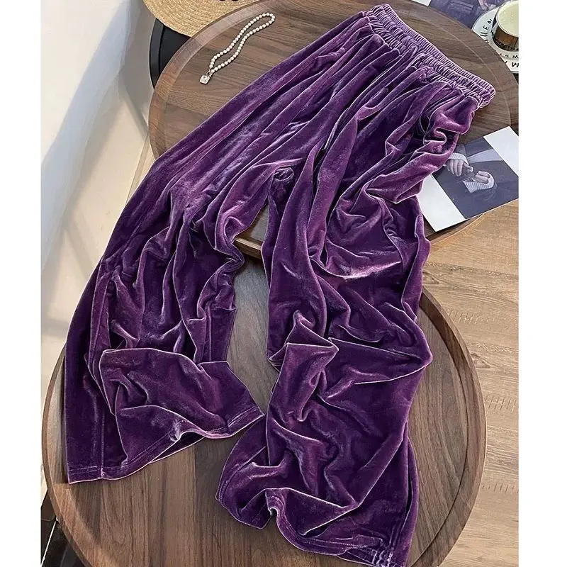 Purple High-waisted Slim Velvet Wide-leg Pants New Korean Version Simple Loose Draping Plus Velvet Casual Pants
