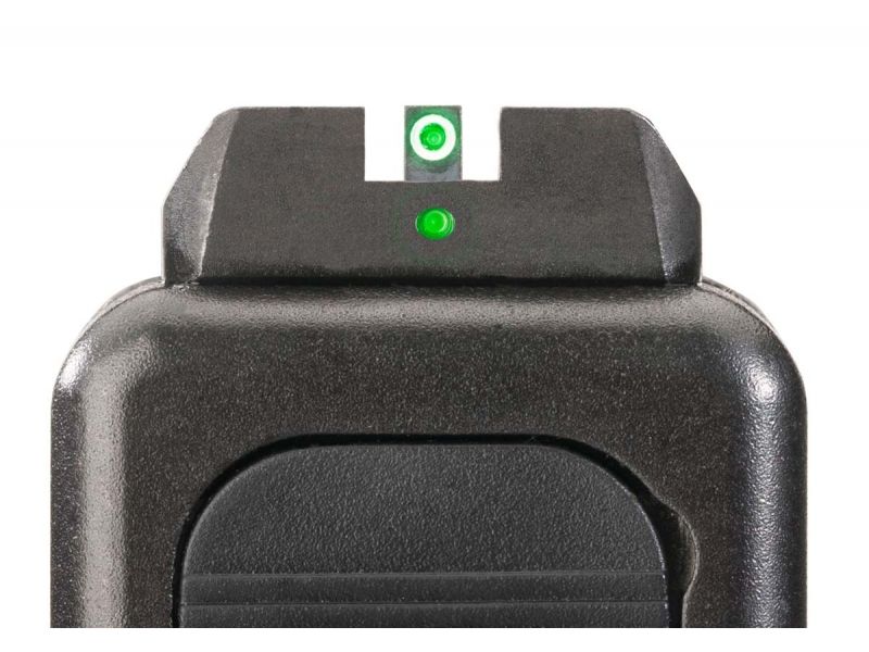The AmeriGlo i-dot night sight sets have a green tritium lamp front, one green tritium lamp rear (centered below notch) for Glocks. Designed for simple front sight acquisition while retaining rear illumination.